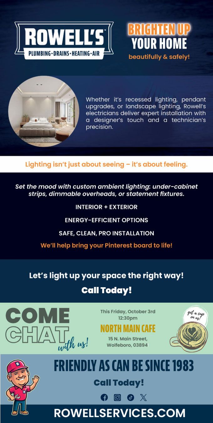 Whether it's recessed lighting, pendant upgrades, or landscape lighting, Rowell's electricians deliver expert installation with a designer's touch and a technician's precision.